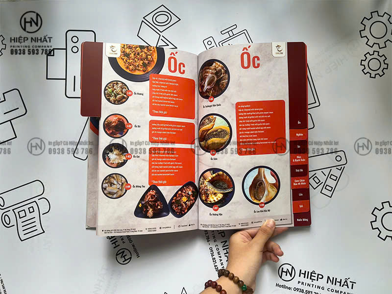 In Hiệp Nhất chuyên in menu bìa cứng gáy ốc cho quán ăn, nhà hàng với hình thức chuyên nghiệp và độ bền cao. Xưởng nhận in số lượng ít theo yêu cầu, hỗ trợ tư vấn miễn phí và chỉnh sửa file thiết kế, giúp khách hàng tiết kiệm thời gian chuẩn bị.