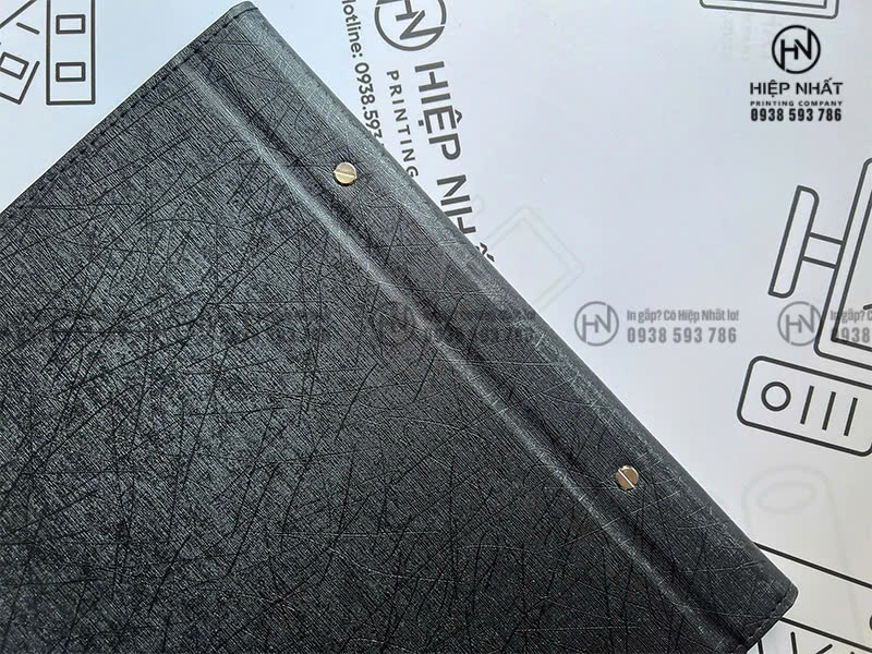 Gia công: Đóng gáy ốc kim loại, lật mở linh hoạt, thuận tiện thay đổi nội dung