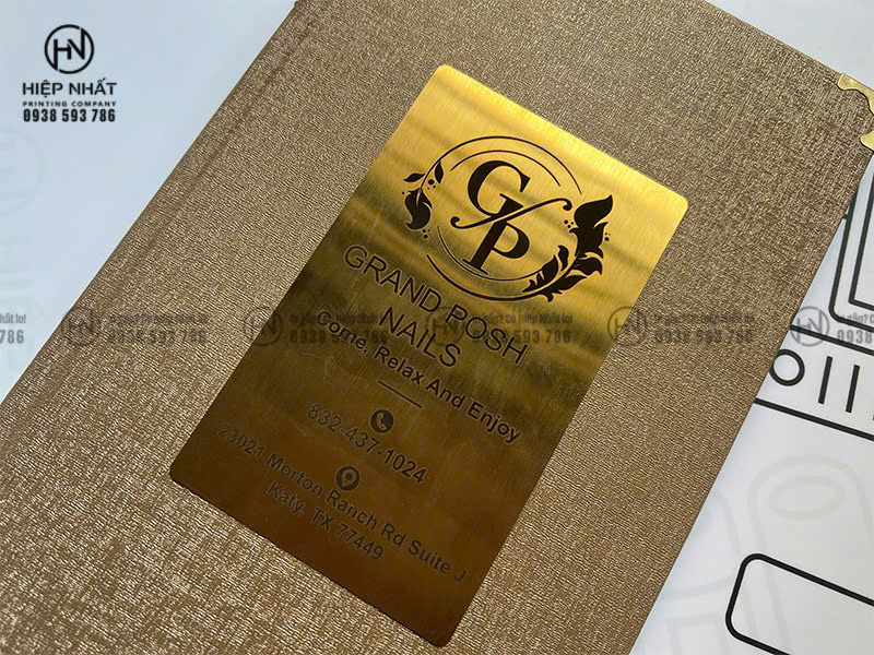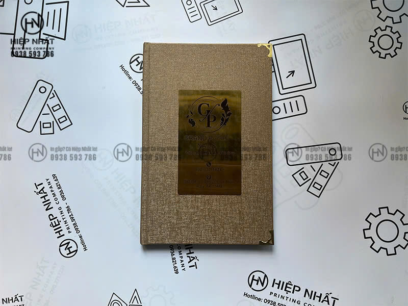 Mẫu menu bìa da photobook của Grand Posh Nails được In Hiệp Nhất in ấn theo yêu cầu với các thông số: