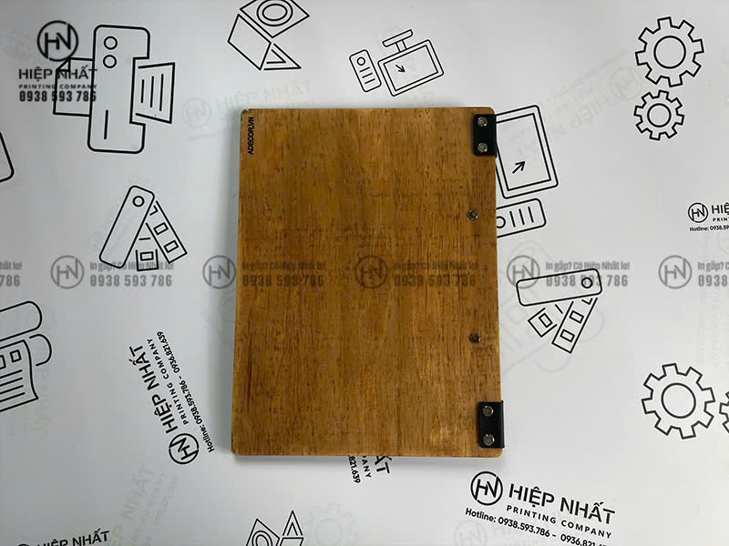 In menu bìa gỗ kẹp giấy