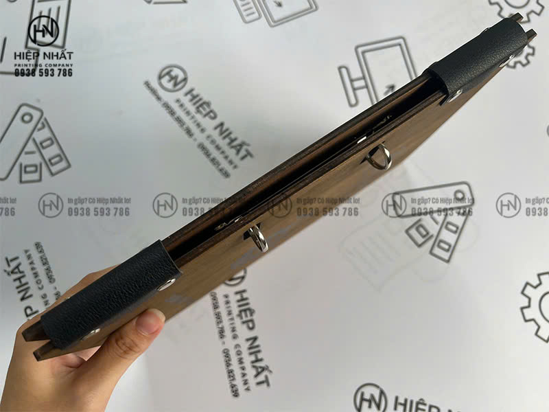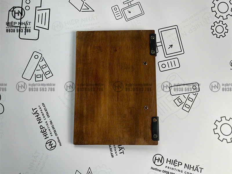In menu bìa gỗ kẹp giấy