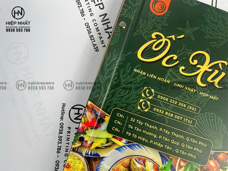 In Hiệp Nhất chuyên in menu bìa cứng gáy ốc cho quán ăn, nhà hàng với hình thức chuyên nghiệp và độ bền cao. Xưởng nhận in số lượng ít theo yêu cầu, hỗ trợ tư vấn miễn phí và chỉnh sửa file thiết kế, giúp khách hàng tiết kiệm thời gian chuẩn bị.
