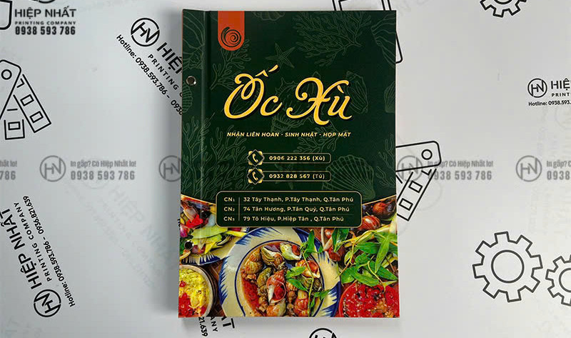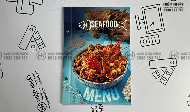 Menu bìa cứng gáy ốc của Nhà hàng Sea Food được thiết kế theo phong cách gọn gàng, hiện đại, phù hợp với không gian nhà…