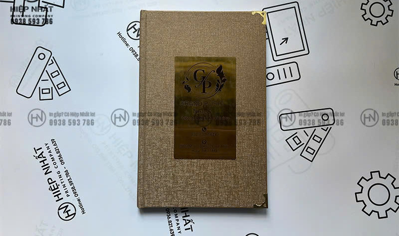 Menu bìa da photobook gáy mở phẳng của Grand Posh Nails được thiết kế theo phong cách sang trọng, hiện đại, phù hợp với không gian…