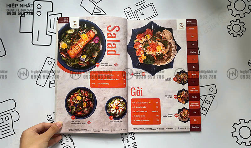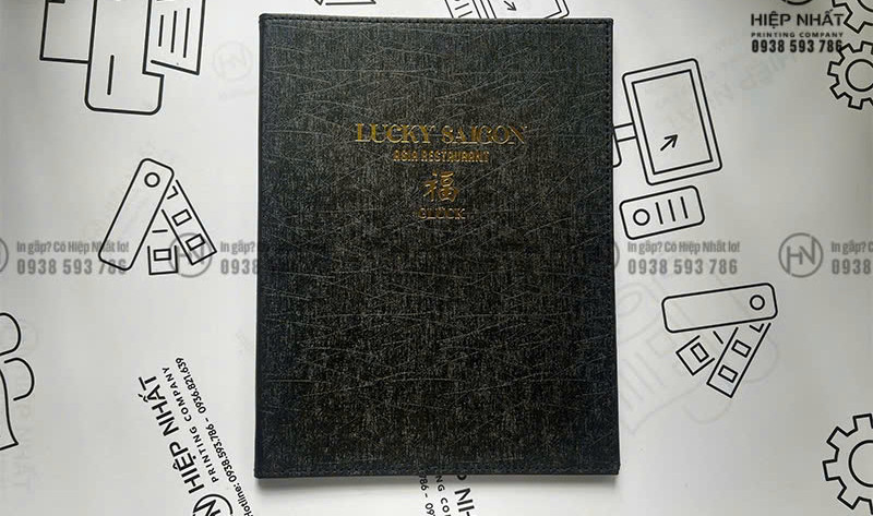 Menu bìa da gáy ốc trong vít ốc lá nhựa của Lucky Saigon Restaurant được thiết kế hướng đến sự gọn gàng và bền bỉ trong…