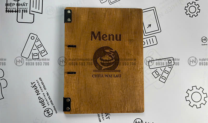 Menu bìa gỗ gáy còng in UV của Chill Wai Lau được thiết kế theo phong cách mộc mạc pha chút hiện đại, phù hợp với…